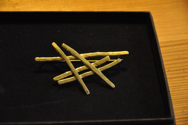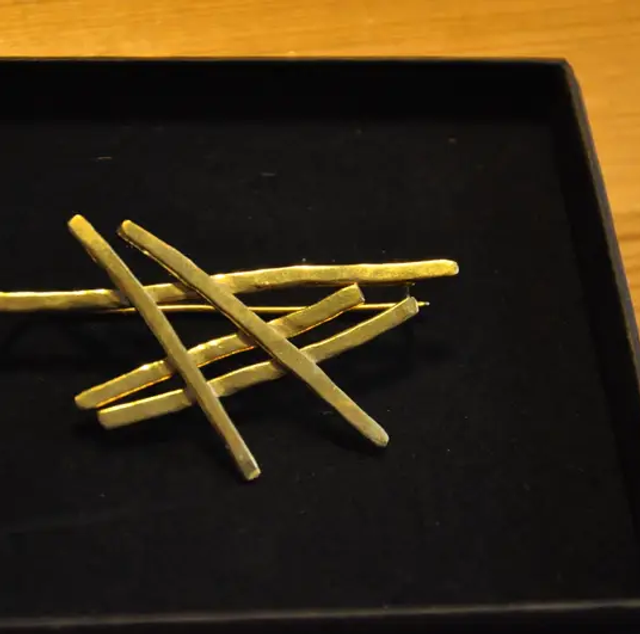 Broche réalisée entièrement en laiton dont une aiguille laiton adaptée aux mailles larges type pulls et vestes.